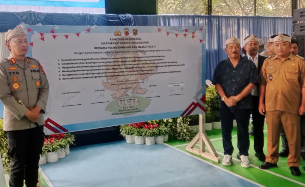Sumedang – Ketua Asosiasi Pemerintah Desa Seluruh Indonesia (APDESI) Kabupaten Sumedang, Welly Sanjaya, mengapresiasi kolaborasi yang terjalin antara pemerintah desa dan Polres Sumedang dalam upaya mendorong penguatan ketahanan pangan lokal, salah satunya melalui peluncuran maskot Ubi Cilembu bernama Ucil.