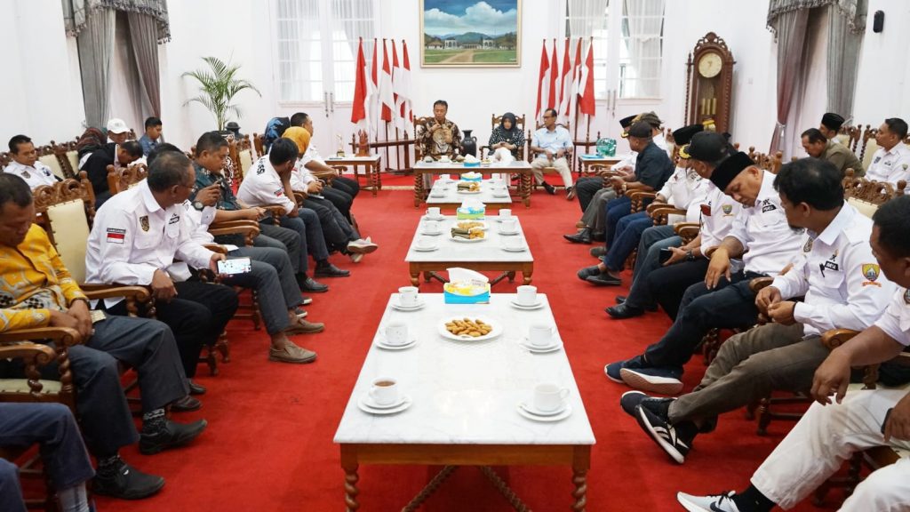 TAHUEKSPRES, SUMEDANG – Penjabat (Pj) Bupati Sumedang, Herman Suryatman menerima kunjungan dari Asosiasi Pemerintahan Desa seluruh Indonesia (APDESI) Sumedang di Gedung Negara, Rabu (28/9/2023).