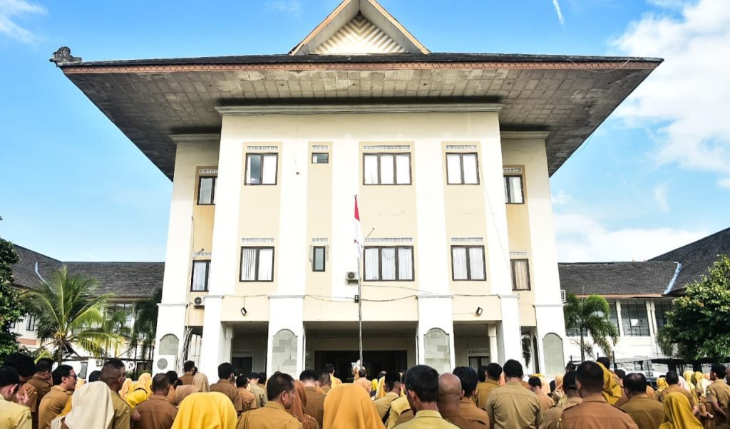 Sumedang – Ribuan aparatur sipil negara (ASN) di Kabupaten Sumedang berkumpul di Lapangan IPP Setda, Senin (15/9/2025). Apel pagi kali ini sekaligus menjadi momentum peluncuran core values ASN BerAKHLAK (Berorientasi Pelayanan, Akuntabel, Harmonis, Loyal, Adaptif, Kompeten, Kolaboratif).