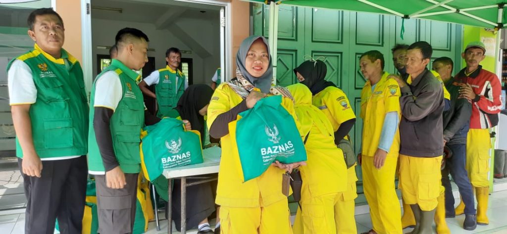 TAHUEKSPRES, SUMEDANG – Jelang hari raya Idul Fitri 1445 H, Badan Amil Zakat Nasional (Baznas) Kabupaten Sumedang salurkan 2500 paket sembako kepada penerima manfaat dilingkungan Satuan Kerja Perangkat Dinas (SKPD) khusus untuk tenaga pramubakti/pramukantor, dan petugas kebersihan.