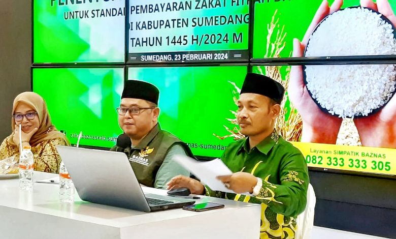 Badan Amil Zakat Nasional (BAZNAS) Kabupaten Sumedang melalui rapat pada Tanggal 23 Februari 2024 bersama unsur terkait lainnya telah menetapkan besaran zakat fitrah untuk Tahun 1.445 H/2024 M senilai Rp40 Ribu perjiwa dan untuk fidyah Rp30 Ribu.
