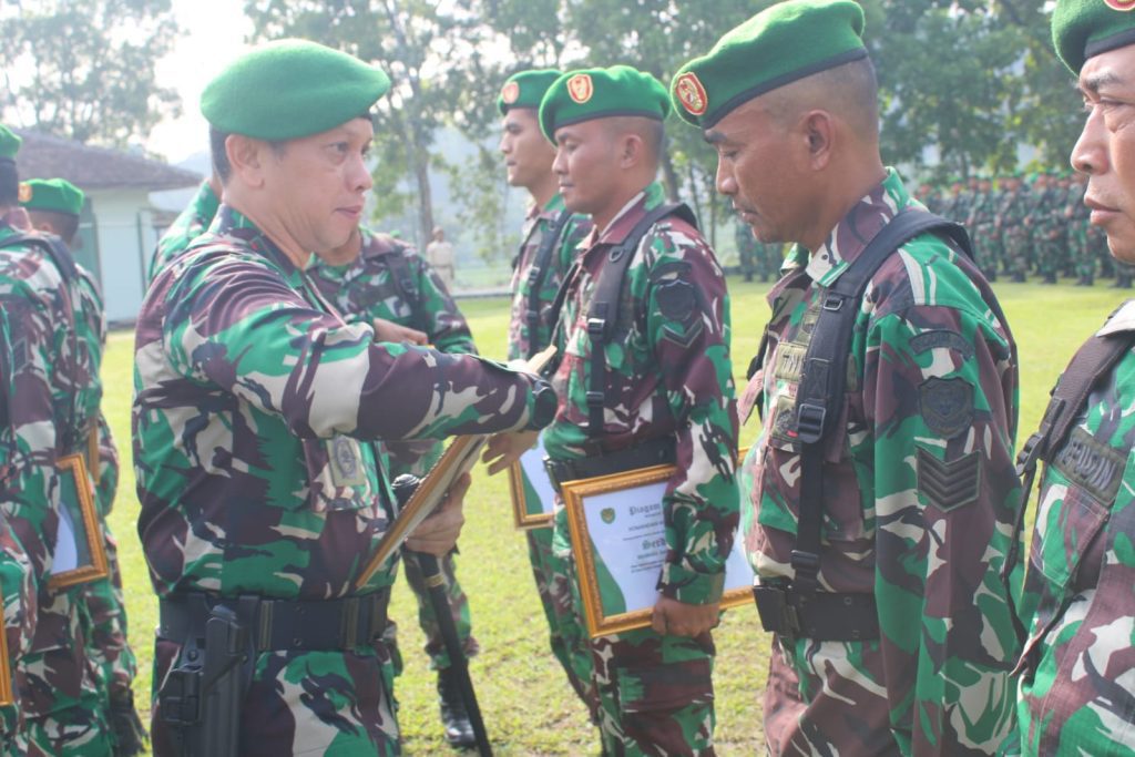 Penghargaan diberikan dihadapan 300 Prajurit setelah pelaksanaan upacara bendera 17an yang dilakukan setiap bulan di lapangan Apel Kodim 0610/Sumedang, Senin (17/04/2023).