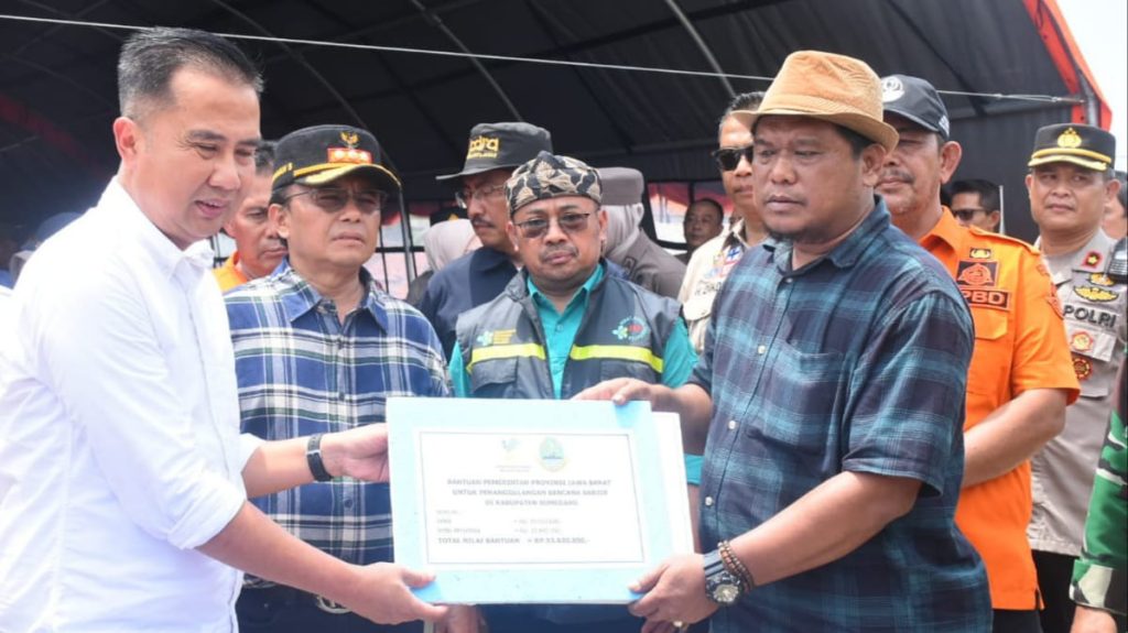 Di kesempatan itu, Pj Gubernur Jabar menyerahkan secara simbolis bantuan uang beserta Sembako dan keperluan lain kepada masyarakat terdampak bencana alam banjir di Kecamatan Ujungjaya. (*)