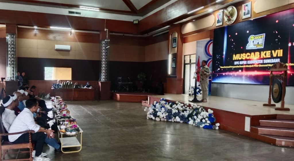 Sumedang – Bupati Sumedang, Dony Ahmad Munir, menghadiri langsung gelaran Musyawarah Cabang (Muscab) ke 7 Himpunan Pengusaha Muda Indonesia (HIPMI) Kabupaten Sumedang yang digelar di Aula Tampomas Pusat Pemerintahan Sumedang, Sabtu (5/7/2025).