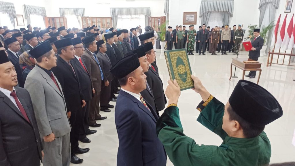 TAHUEKSPRES, SUMEDANG – Bupati Sumedang, H. Dony Ahmad Munir melantik sebanyak 257 orang Aparatur Sipil Negara (ASN) Pejabat Pimpinan Tinggi Pratama, Administrator dan Pengawas di Gedung Negara (GN) Pemerintah Kabupaten Sumedang Jawa Barat (Jabar), Kamis (20/7/2023).