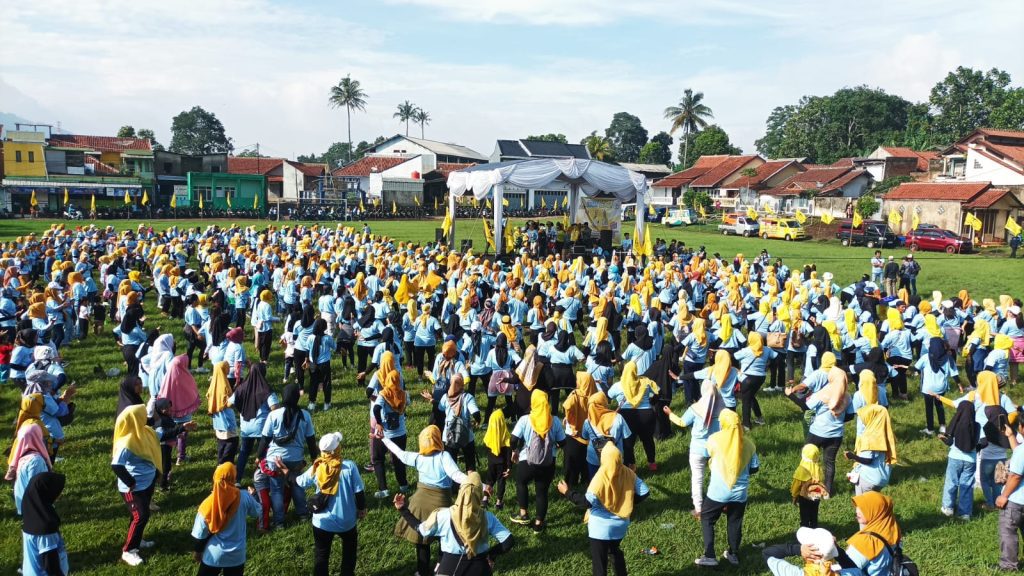 TAHUEKSPRES, SUMEDANG – Lebih dari 1200 relawan dan simpatisan tim pemenangan Calon Legislatif (Caleg) DPRD Sumedang Dapil VI nomor 1 Sonia Sugian, Caleg DPRD Provinsi Jawa Barat (Jabar) Dapil XI nomor 1 H. Yomanius Untung dan Caleg DPR RI Dapil Jabar IX nomor 1 Itje Siti Kuraesin meriahkan Senam Gemoy di Lapang Sepak Bola Desa Gudang Tanjungsari Sumedang Jabar, Minggu (4/2/2024).