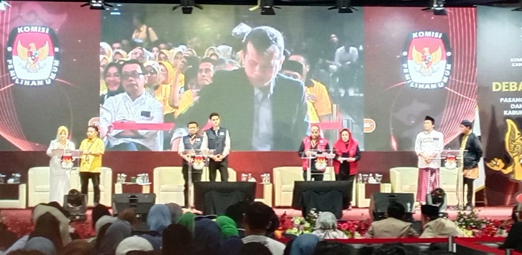 TAHUEKSPRES, SUMEDANG – Debat publik kedua pasangan calon Bupati dan Wakil Bupati Kabupaten Sumedang tahun 2024 mengusung tema “Penguatan tata kelola pemerintahan yang berintegritas dan demokratis berorientasi pada pelayanan publik”. Berlangsung di Graha Plaza Asia Sumedang pada Rabu, (13/11/2024).