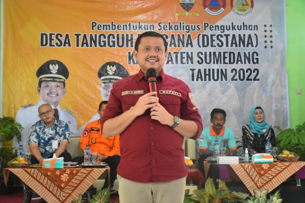TAHUEKSPRES, SUMEDANG – Bupati Sumedang, H. Dony Ahmad Munir secara resmi mengukuhkan 50 anggota Desa Tangguh Bencana (Destana) dari 11 desa yang ada di Kecamatan Pamulihan Sumedang Jawa Barat (Jabar), Jum’at (2/12/2022).