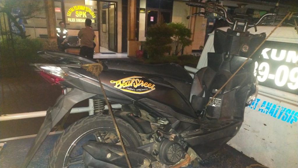 Sepeda motor Honda Beat dengan Nomor Polisi Z 2449 DAI yang dikendarai FJ (15) diduga menerobos lampu merah di dekat Gerbang Tol (GT) Pamulihan Sumedang sehingga bertabrakan menghantam kendaraan Toyota Kijang LSX dengan Nopol D 1840 IL, pada Rabu malam (26/7) sekira Jam 18.45 WIB.