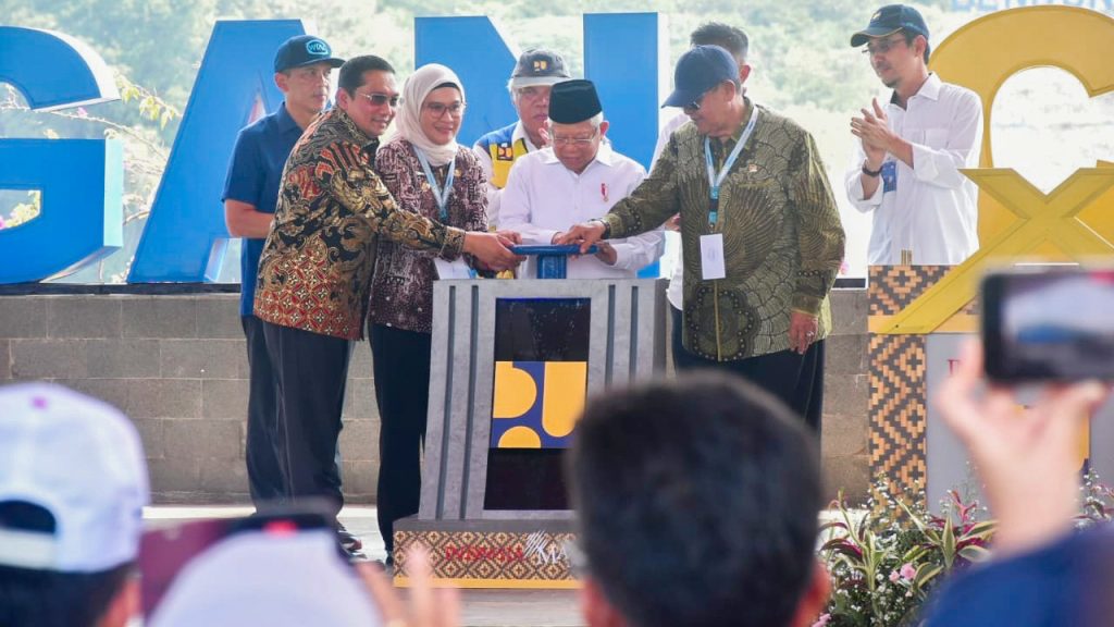 Sumedang,- Wakil Presiden Ma’ruf Amin meresmikan Bendungan Cipanas senilai Rp 2 triliun di Sumedang pada Selasa (9/7/2024). Acara peresmian ditandai dengan pemutaran miniatur keran air oleh Ma’ruf Amin yang didampingi Pj Gubernur Jawa Barat Bey Machmudin, Pj Bupati Sumedang Yudia Ramli, dan Bupati Indramayu Nina Agustina. Bendungan ini diharapkan dapat menjadi kawasan wisata baru.