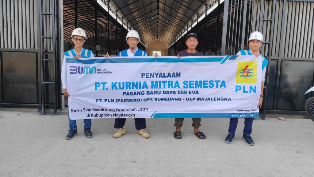 TAHUEKSPRES, MAJALENGKA – Layani Pelanggan dengan cepat, PLN Unit Pelaksanan Pelayanan Pelanggan (UP3) Sumedang telah menyalakan Pasang Baru PT Kurnia Mitra Semesta pada Senin 26 Agustus 2024 lalu dengan daya terpasang 555.000 Volt Ampere (VA). Pasokan listrik PLN dimanfaatkan untuk kegiatan operasional mesin pakan ternak, pompa air juga penerangan di seluruh kawasan tersebut.