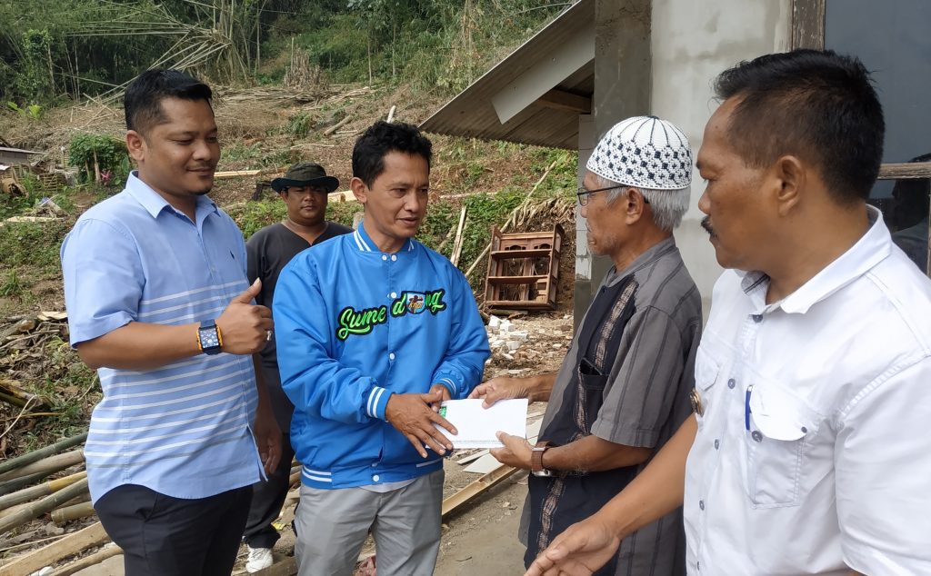 TAHUEKSPRES, SUMEDANG – Dewan Pengurus Cabang (DPC) Partai Kebangkitan Bangsa (PKB) Kabupaten Sumedang berikan santunan kepada korban bencana alam angin puting beliung yang terjadi beberapa waktu lalu. Terlebih, peristiwa itu mengakibatkan dua rumah warga ambruk tertimpa pohon, yakni rumah milik Adang (60) dan Iin (55) di dusun Giriharja Desa Kebonjati Sumedang Utara Jawa Barat (Jabar), Rabu (8/2/2023).