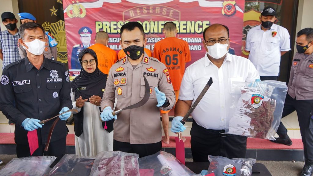 TAHUEKSPRES, SUMEDANG – Kapolres Sumedang AKBP Indra Setiawan didampingi Kasat Reskrim Dede Sopandi