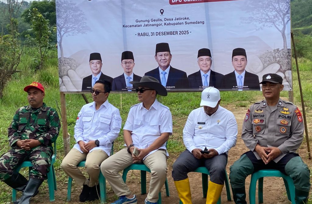 Sumedang – DPC Partai Gerindra Kabupaten Sumedang menggelar gerakan penanaman pohon sebagai bentuk kepedulian terhadap pelestarian lingkungan dan hutan. Kegiatan tersebut dilaksanakan di kawasan Gunung Geulis, Kecamatan Jatinangor, tepatnya di Desa Jatiroke, Rabu (31/12/2025).