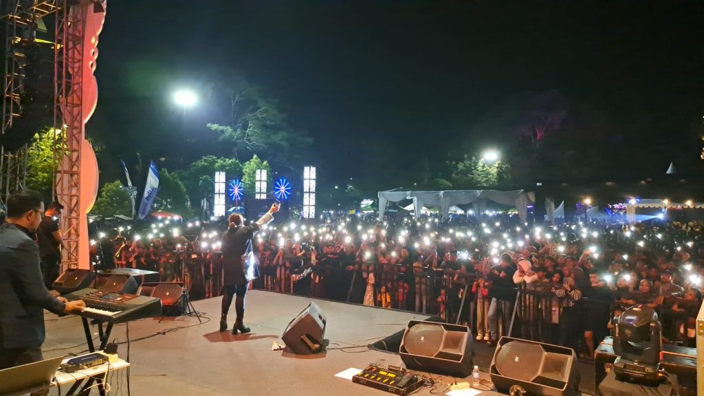 “Masyarakat yang hadir di sini wajib bahagia. Jaga keamanan saat menonton. Jangan sampai merusak fasilitas umum yang ada di sini,” kata Bambang saat sambutan tadi malam.