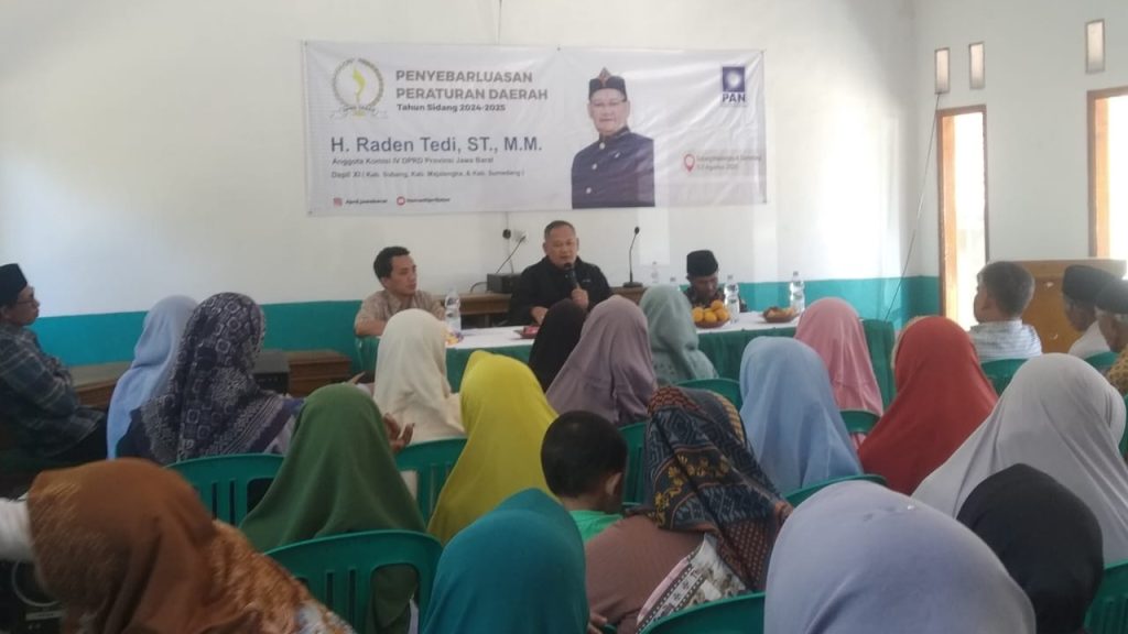 Sumedang – Anggota DPRD Provinsi Jawa Barat dari Fraksi PAN, H. Raden Tedi, menggelar kegiatan reses sekaligus penyebarluasan Peraturan Daerah (Perda) No. 4 Tahun 2023 tentang Rencana Perlindungan dan Pengelolaan Lingkungan Hidup, di Majelis Ta’lim Al-Furqon Pimpinan Cabang Muhammadiyah (PCM) Pamulihan, Kampung Lemahnendeut, Desa Citali, Kecamatan Pamulihan, Sabtu (2/8/2025).