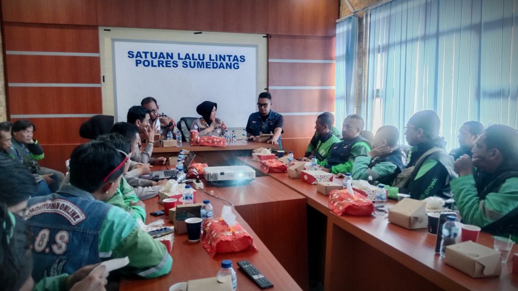 “Alhamdulillah kita bisa kolaborasi dengan pihak kepolisian di Sumedang, ada dua macam yang akan kita kerjakan bareng-bareng dengan ibu kasat lantas, yang pertama ada Ojol mart, seperti warung tempat anak-anak nongkrong lah disana, terus kedua juga kita dikasih bengkel Ojol dan kebetulan dari kita juga ada mekanik ojol juga dan difasilitasi juga,” kata Reza.