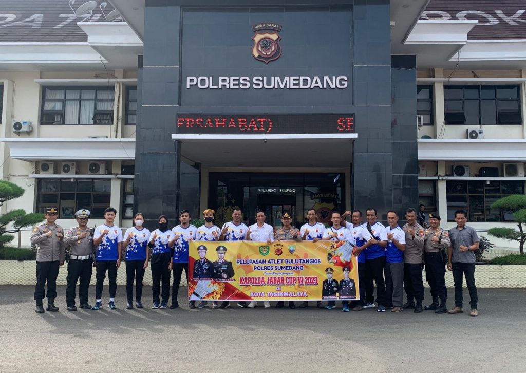 TAHUEKSPRES, SUMEDANG – Kapolres Sumedang AKBP Indra Setiawan, didampingi Wakapolres Sumedang Kompol Endar Supriyatna melepas 30 atlet badminton mewakili Polres Sumedang yang akan berlaga pada Kejuaraan Badminton Kapolda Jabar Cup IV di Mapolres Sumedang Jabar, Rabu (7/6/2023).