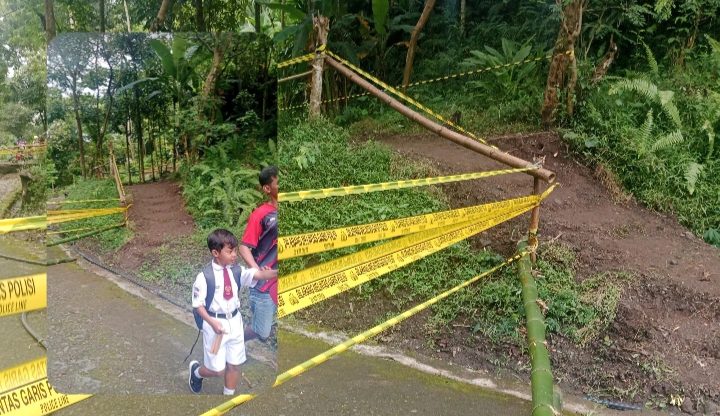 Jalan Amblas di Cibeureum Wetan Putuskan Akses, Siswa SD dan Petani Pakai Jalur Darurat