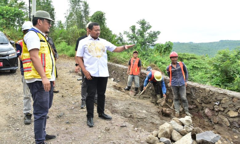 Sumedang – Bupati Sumedang Dony Ahmad Munir meninjau perbaikan jalan Conggeang-Ujungjaya yang rusak, Kamis (15/1/2026). Perbaikan jalan sepanjang 2,8 kilometer ini menggunakan dana Inpres Jalan Daerah (IJD) sebesar 19 miliar Rupiah.