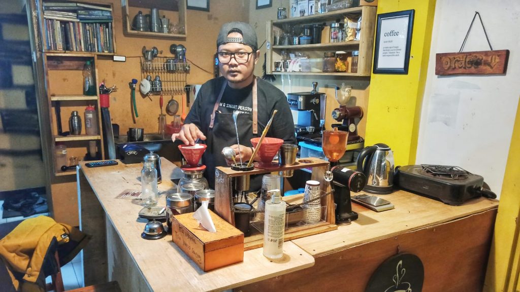 Ia menjelaskan, belajar menjadi barista secara otodidak sejak tinggal di Jakarta. “Awalnya saat di Jakarta ada teman yang buka kedai kopi, kemudian sambil nongkrong disana sambil belajar bikin kopi sendiri. Terus belajar otodidak hingga akhirnya buka kedai kopi sendiri,” kata pria kelahiran 1992 ini.