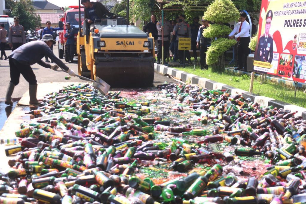 Kapolres mengatakan, adapun miras yang dimusnahkan berjumlah 2011 botol dari berbagai merk ditambah dengan tuak sebanyak 20 liter, 7000 butir petasan korek serta 350 petasan mercon.