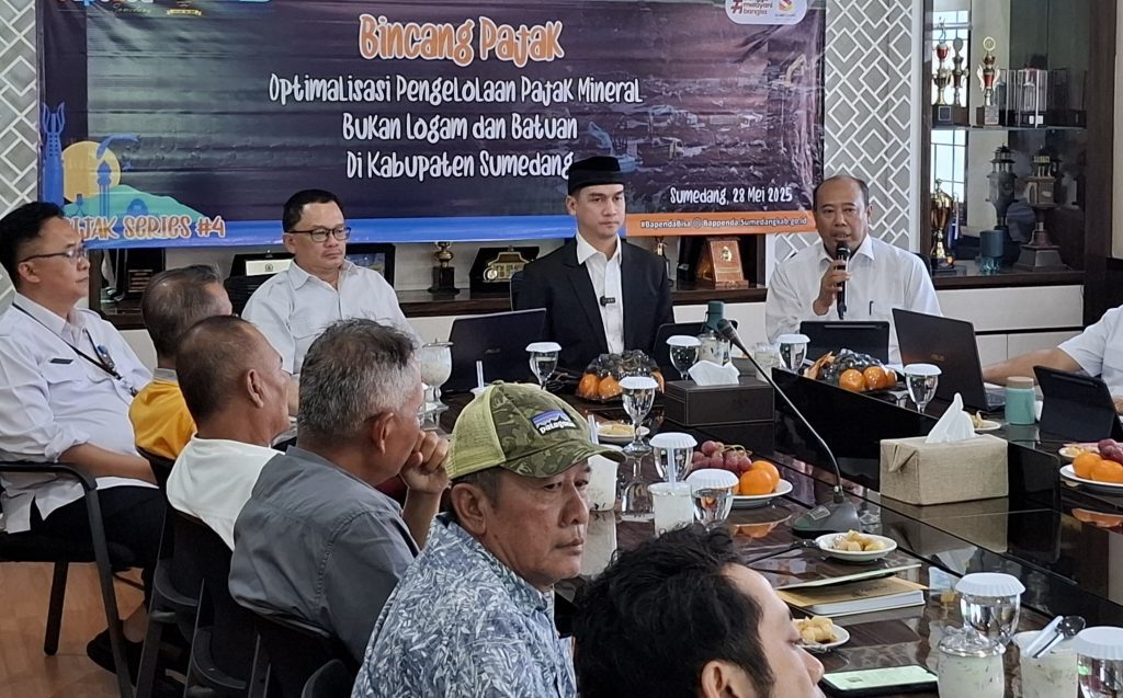 Sumedang – Wakil Bupati Sumedang M Fajar Aldila duduk bersama para pelaku usaha Mineral Bukan Logam dan Batuan (MBLB) untuk membahas optimalisasi pengelolaan pajak daerah. Pertemuan digelar di Aula Bapenda Sumedang, Kamis (29/5/2025).