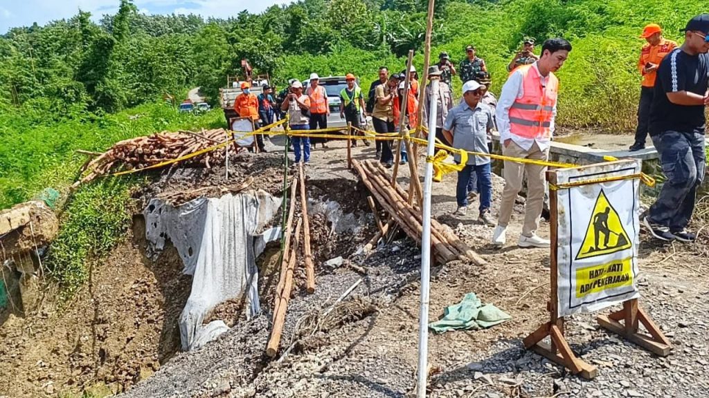 Sumedang – Wakil Bupati Sumedang, M. Fajar Aldila, meninjau langsung kondisi jalan yang ‘butut’ di Haurpapak, Kecamatan Surian, yang terputus pada Sabtu (22/2/2025).