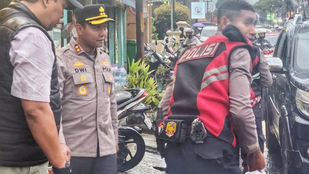 Sumedang – Kapolres Sumedang, AKBP Joko Dwi Harsono, bersama anggota Polres Sumedang tetap bertugas meski diguyur hujan demi mengamankan aktivitas ngabuburit warga. Mereka juga membagikan takjil gratis kepada pengguna jalan di depan Jatinangor Town Square (Jatos), Sumedang, Jumat (7/3).