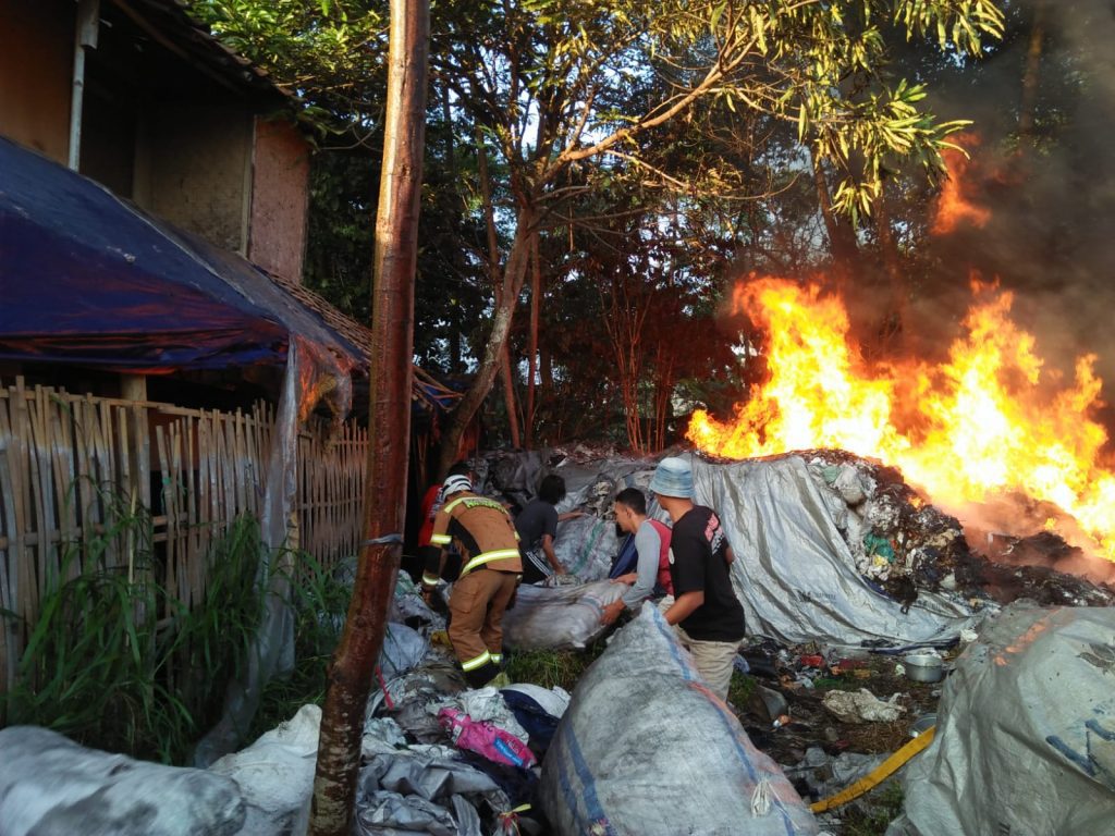 TAHUEKSPRES, SUMEDANG – Terjadi kebakaran limbah bahan baku kelosan di Gudang Rongsokan yang berada di Desa Margajaya Kecamatan Tanjungsari Kabupaten Sumedang, Senin (10/07/2023) pagi.