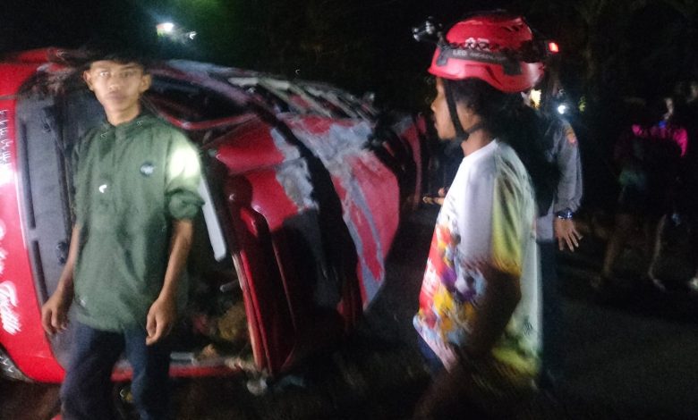 Dalam video amatir yang beredar pada media sosial terlihat mobil minibus berwarna merah tersebut terbalik hingga membuat penumpangnya terlempar dari dalam kendaraan.