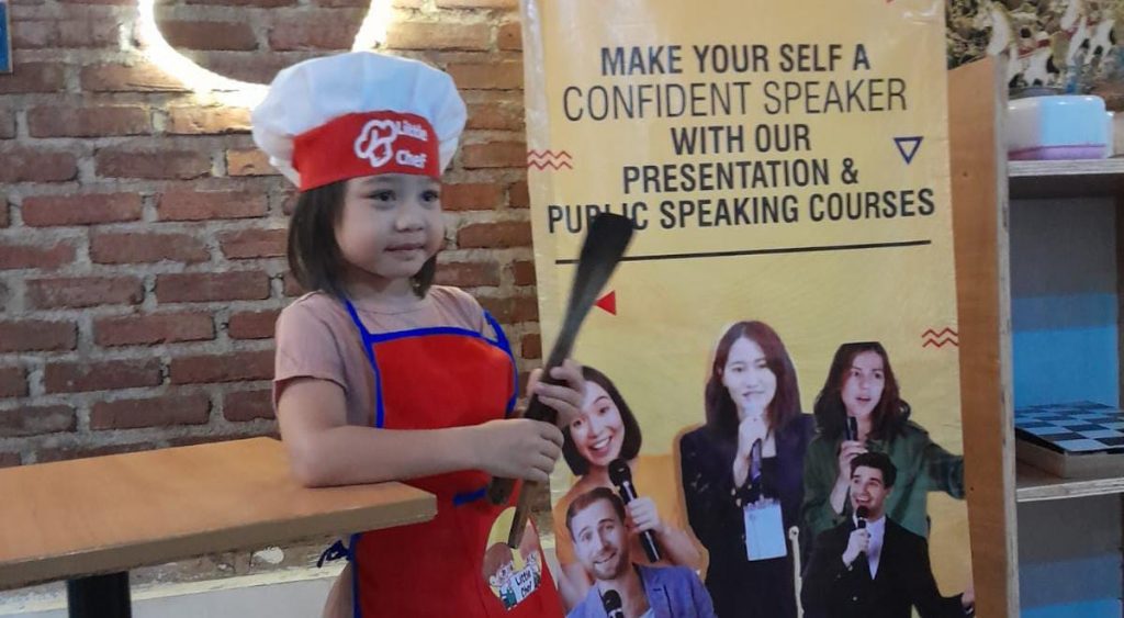 TAHUEKSPRES, SUMEDANG – Anak-anak terlihat berkerumun tertawa bahagia sembari menjawab beberapa pertanyaan dengan bahasa Inggris. Ternyata itu merupakan murid-murid dari DS Publik Speaking Center saat mengikuti kelas Master Chef DS Public Speaking Center di D’Legend Cafe and Coffe Shop Kecamatan Jatinangor Kabupaten Sumedang, Jumat (27/10/2023).