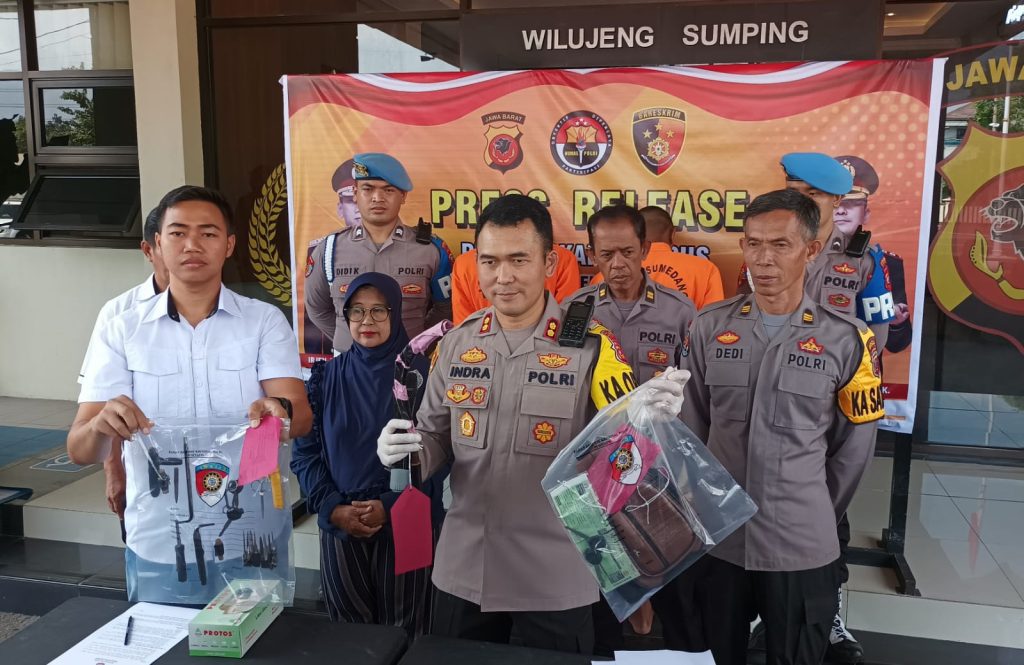 TAHUEKSPRES, SUMEDANG – Dua tersangka pelaku Pencurian Kendaraan Bermotor (Curanmor) yang kerap melakukan aksinya di wilayah Kecamatan Sumedang Utara akhirnya berhasil diringkus dan diganjar timah panas oleh Satreskrim Polres Sumedang, Rabu (19/4/2023).