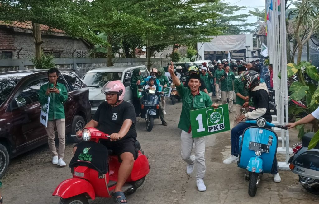 TAHUEKSPRES, SUMEDANG – Komunitas motor vespa Sumedang dampingi 50 Bakal Calon Legislatif (Bacaleg) Partai Kebangkitan Bangsa (PKB) guna mengikuti tahapan pendaftaran untuk Pemilu 2024 ke Komisi Pemilihan Umum (KPU) Sumedang Jawa Barat (Jabar), Sabtu (13/5/2023).