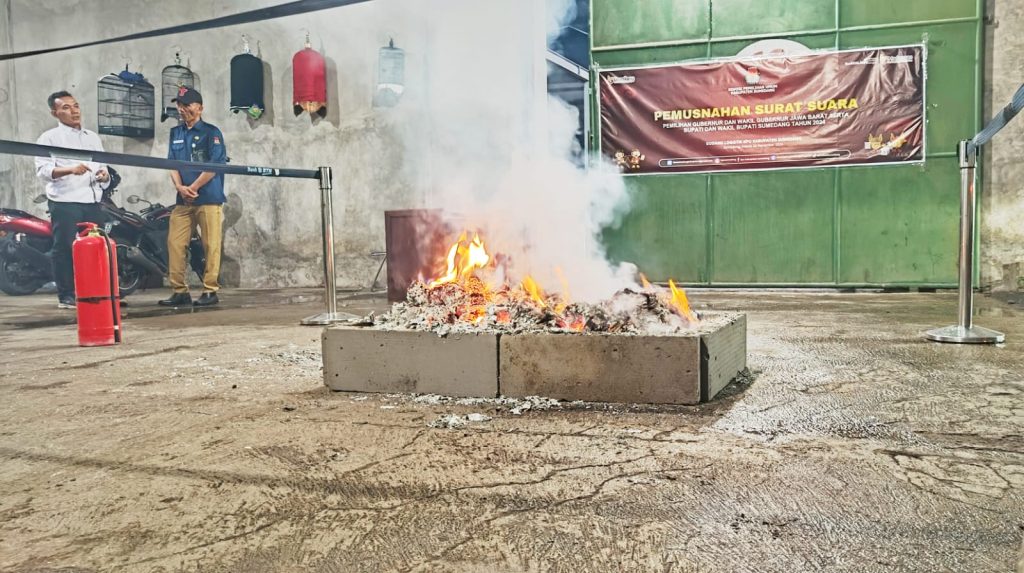 Sumedang – KPU Sumedang memusnahkan ribuan surat suara yang rusak dan tidak layak digunakan. Pemusnahan dilakukan di Gudang Logistik KPU Sumedang, Selasa malam (26/11/2024).