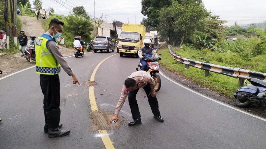 Seorang pengendara motor Vespa dengan plat nomor D 3530 CY atas nama Apandi (65) warga Dusun Pamagersari RT 02 RW 03 Desa Tanjungsari Kecamatan Tanjungsari Kabupaten Sumedang terlibat kecelakaan lalu-lintas di Jalan Raya Bandung-Sumedang, tepatnya di belokan Sanur, Desa Hegarmanah Kecamatan Jatinangor Kabupaten Sumedang, Jumat pagi (31/3).