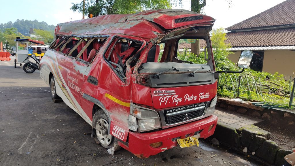 “Saat ini kami masih menyelidiki penyebab kecelakaan. Dugaan sementara, pengemudi tidak mengenal medan dan kecepatan kendaraan terlalu tinggi saat melewati turunan,” jelas Dini.