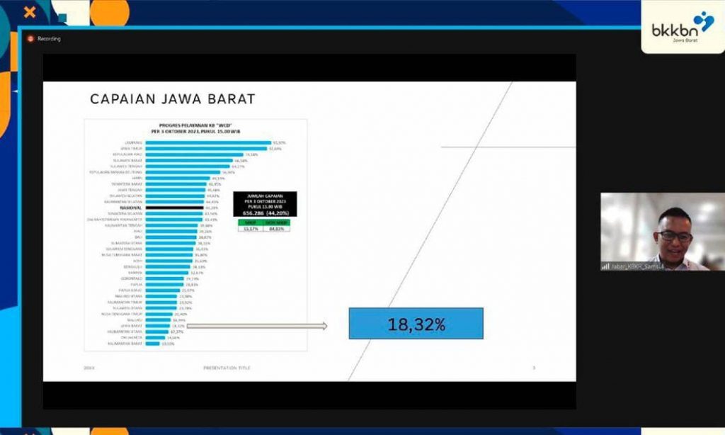 TAHUEKSPRES, BANDUNG – Perwakilan BKKBN Provinsi Jawa Barat melaksanakan rapat Evaluasi Laporan Sistem Informasi Keluarga (SIGA) Hasil Pelayanan World Contraception Day (WCD) atau Hari Kontrasepsi Sedunia secara daring, Rabu (4/10/2023).