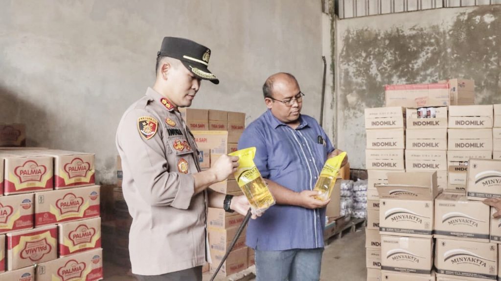 Kapolres Sumedang, AKBP Indra Setiawan, didampingi Kepala Diskopukmpp Sumedang melakukan pengecekan ke sejumlah gudang, distributor hingga pengecer minyak goreng di Wilayah Kabupaten Sumedang, Jum’at (3/2).
