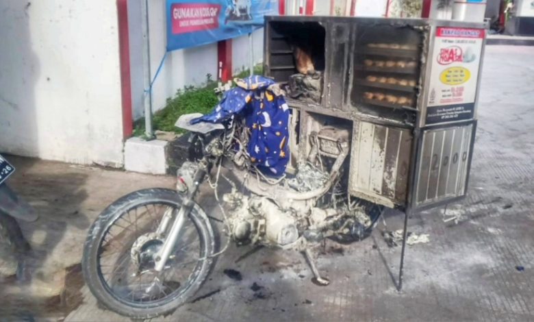 Sumedang – Kebakaran terjadi pada sepeda motor yang digunakan untuk berjualan bapao di SPBU Desa Serang, Kecamatan Cimalaka, Kabupaten Sumedang, Rabu (1/1/2025) pagi.