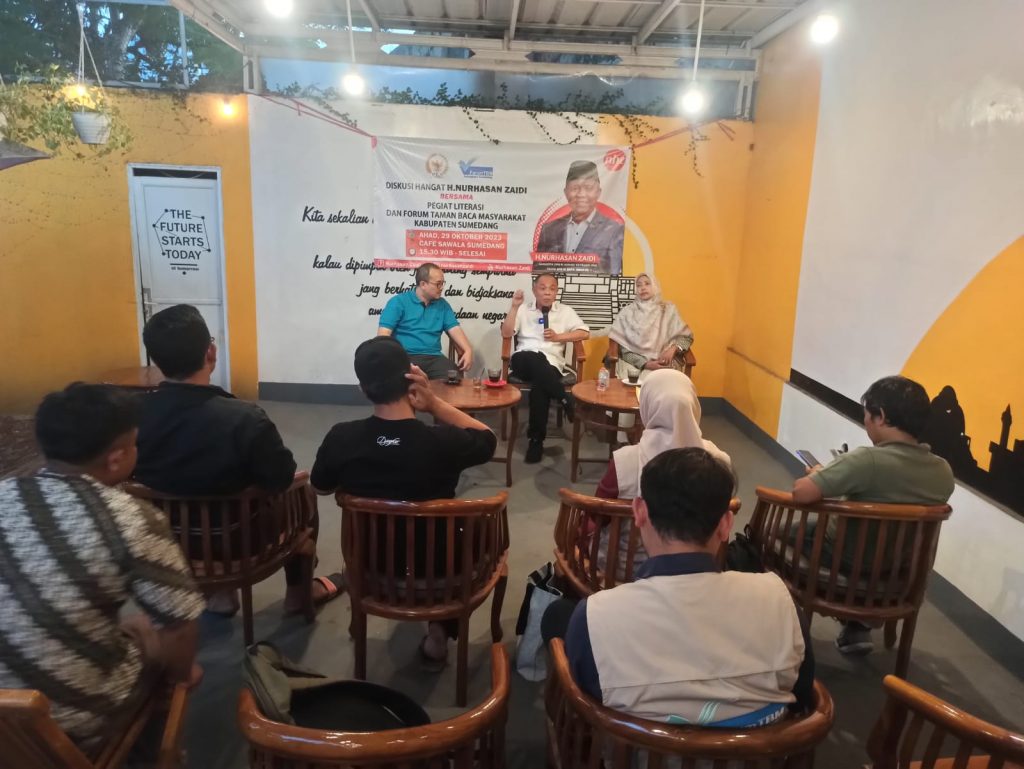 TAHUEKSPRES, SUMEDANG – Anggota DPR RI Fraksi PKS, Nurhasan Zaidi, melakukan diskusi dengan Pegiat Literasi yang ada di Kabupaten Sumedang pada Minggu 29 Oktober 2023. Bertempat di Cafe Sawala, Jalan Kartini Sumedang. kegiatan ini dinisiasi oleh Taman Baca Masyarakat (TBM) Kabupaten Sumedang.