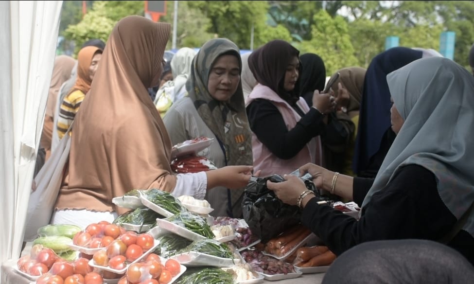 “kami panitia HUT Korpri ke-54 bekerja sama dengan Dharma Wanita dan Dinas Pertanian dan Ketahanan Pangan menyelenggarakan Gerakan Pangan Murah,” ujarnya.
