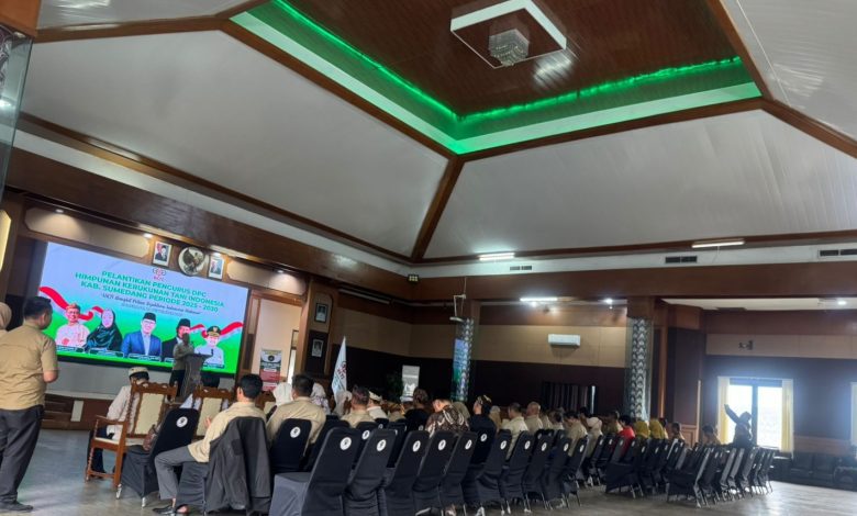 Sumedang – Pengurus Himpunan Kerukunan Tani Indonesia (HKTI) DPC Kabupaten Sumedang periode 2025-2030 resmi dilantik di Aula Tampomas, Pusat Pemerintahan Sumedang, Senin (29/9/2025). Hadir dalam acara tersebut Ketua DPD HKTI Jawa Barat, Dian Anggraeni, jajaran pengurus, para ketua PAC HKTI se-Kecamatan, hingga perwakilan tokoh tani.