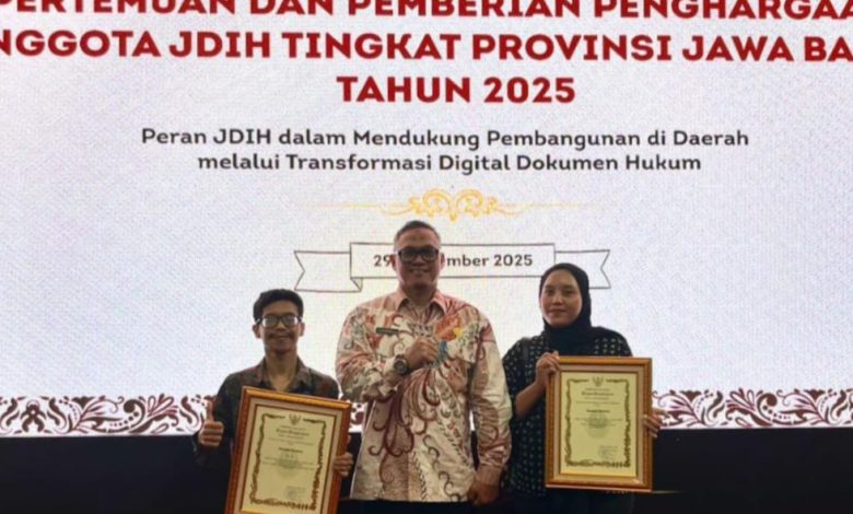 Sumedang – Pemkab Sumedang kembali mencatat prestasi di tingkat Jawa Barat. Tahun 2025 dengan berhasil meraih dua penghargaan sekaligus dalam ajang Jaringan Dokumentasi dan Informasi Hukum (JDIH), yakni Kategori Anggota JDIH Peningkatan Kinerja serta Kategori Anggota JDIH Pengelolaan Dokumen Hukum Desa Terbaik (Juara III).