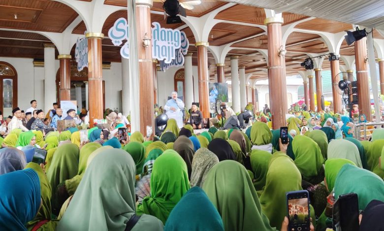 Sumedang – Ribuan jamaah memadati pelataran Masjid Agung Sumedang dalam gelaran perdana ‘Sumedang Berhaji’ yang digelar Bank Syariah Indonesia (BSI) Cabang Sumedang, Kamis (15/5/2025). Kegiatan ini menjadi magnet tersendiri bagi masyarakat, terutama kalangan ibu-ibu, yang antusias hadir menyimak tausiyah dari penceramah kondang, Mamah Dedeh.