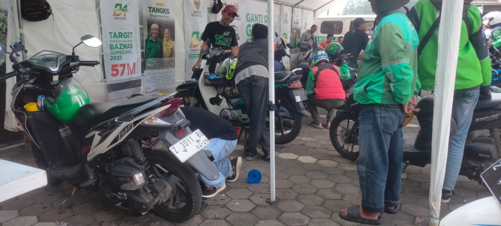 Sumedang – Dalam rangka memperingati Hari Ulang Tahun (HUT) ke-24, Baznas Sumedang menggelar program ganti oli gratis bagi Ojek Online (Ojol) di halaman Kantor Baznas Sumedang, yang dipadati sekitar 300 ojol yang datang untuk mengantre pada Jumat (17/1/2025).
