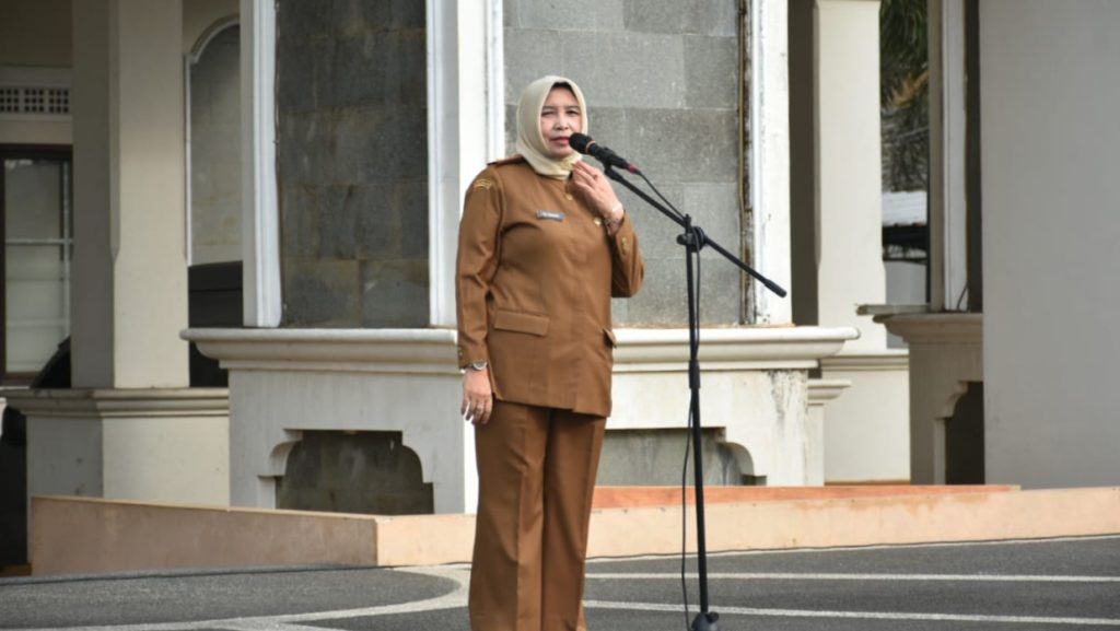 Sumedang – Sekretaris Daerah (Sekda) Kabupaten Sumedang, Tuti Ruswati, memimpin apel pagi di lingkungan Pusat Pemerintahan Sumedang (PPS), Senin (4/8/2025). Apel yang digelar di Lapangan Setda ini diikuti seluruh ASN, pejabat struktural dan fungsional dari berbagai perangkat daerah.