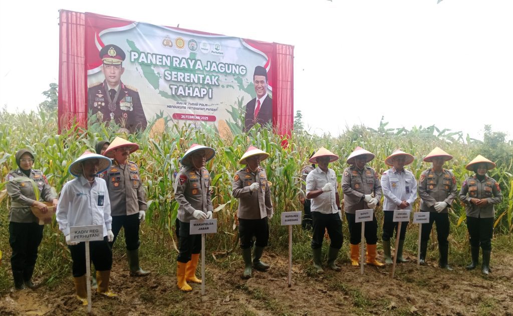 Sumedang – Polda Jawa Barat menggelar Panen Raya Jagung Serentak di Desa Sakurjaya, Kecamatan Ujungjaya, Kabupaten Sumedang, Selasa (26/2/2025). Kegiatan ini merupakan bagian dari program Gugus Tugas Polri Mendukung Ketahanan Pangan yang dilaksanakan serentak di 18 Polda di seluruh Indonesia.