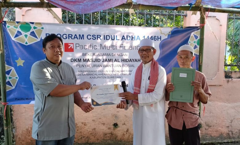 Sumedang – Dalam rangka memperingati Hari Raya Idul Adha 1446 H, PT Pacific Multi Finance melaksanakan program Corporate Social Responsibility (CSR) dengan menyerahkan satu ekor sapi sebagai hewan kurban kepada masyarakat Dusun Mandalaherang, bekerja sama dengan DKM Masjid Jami Al Hidayah. Sabtu (07/06/2025).