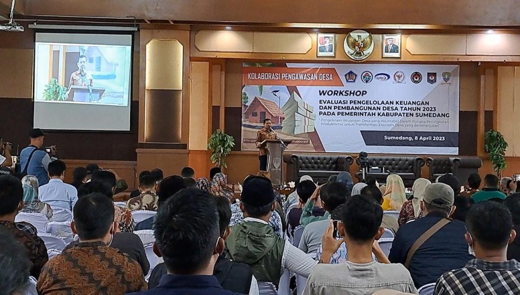TAHUEKSPRES, SUMEDANG – Pemerintah Kabupaten (Pemkab) Sumedang bekerja sama dengan Badan pengawasan dan Keuangan dan Pembangunan (BPKP) Perwakilan Provinsi Jawa Barat (Jabar) menggelar Workshop Evaluasi Pengelolaan Keuangan dan Pembangunan Desa di Aula Tampomas Pusat Pemerintahan Sumedang (PPS) Jabar, Sabtu (8/4/2023).